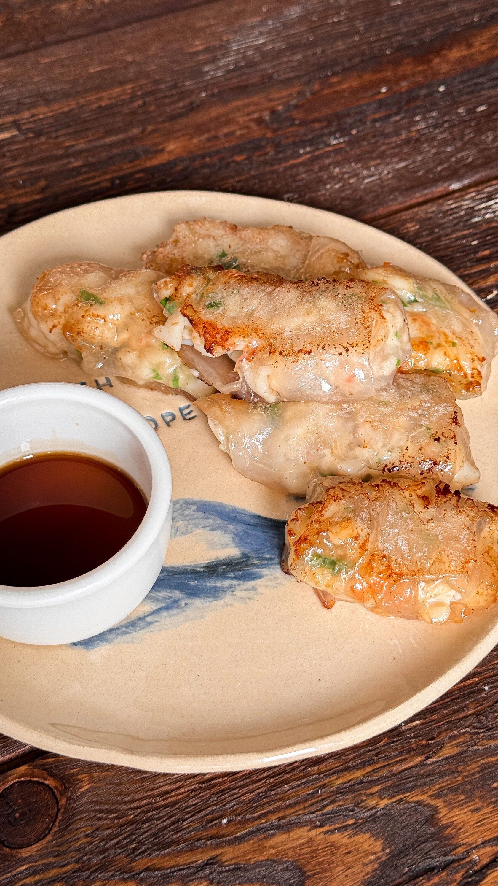 - Начинку - на половинку рисового листа. Сворачиваем.