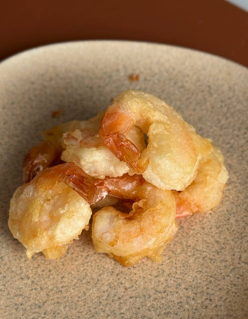 - Опускаем креветку в кляр, в кипящее масло две-три минуты и достаем готовую хрустящую креветку.